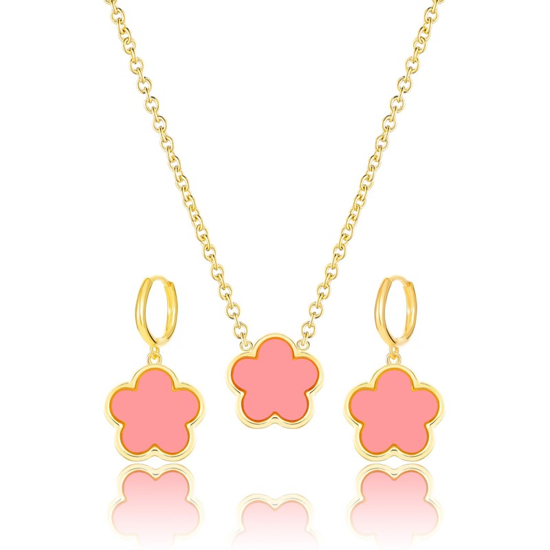 - The Perfect Clover Dangle Earrings and Necklace Set! These Handmade Stunning Necklace and Earring Set Are Made with Plastic and Are Plated in 14K Glod to Ensure a Long Lasting Finish That is Nickel Free, Lead Free, and Hypoallergenic.