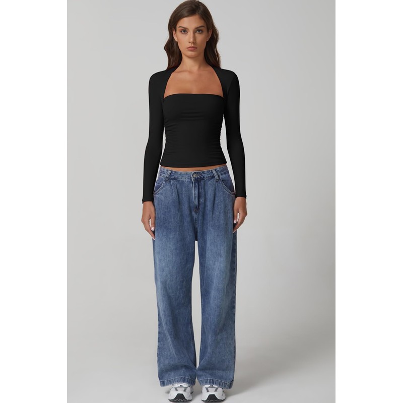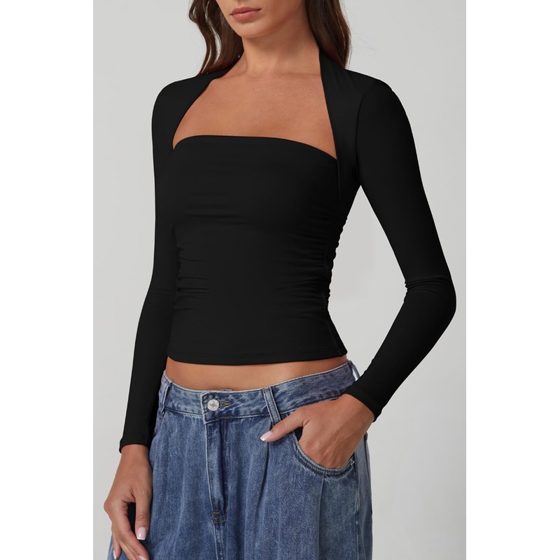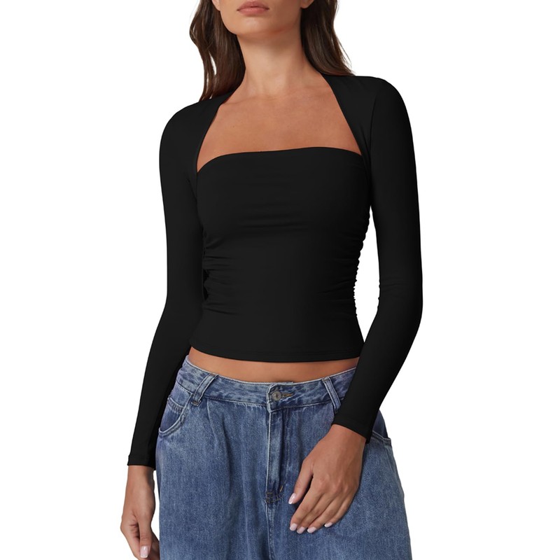 - Elevate Your Style with Elegance: Embrace the perfect blend of comfort and allure with our Long Sleeve Square Neck Crop Top. Crafted to accentuate your silhouette, this top combines a bodycon fit with a decent cropped length, ensuring you make a statement without saying a word. Its sauqre neckline elegantly highlights your collarbones and adds a dash of sophistication to your wardrobe.