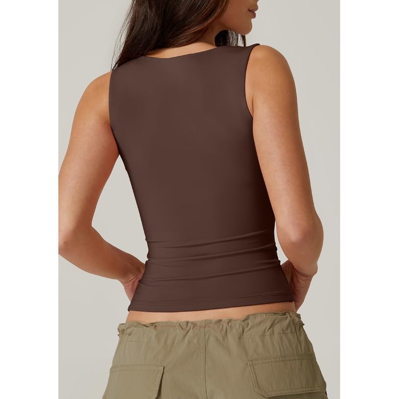 QINSEN Women's Sweetheart Neck T Shirts Full Lined Tee Top Sleeveless Basic Tank Chestnut M