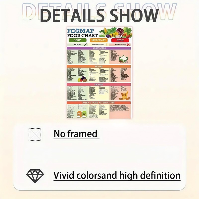- MAKES THOUGHTFUL PRESENTATION OPTION: The low fodmap diet serves as meaningful gift choice. The food list appeals to different personal tastes. The grocery food guide works for various occasions appropriately. The wall prints provides unique decorative value. Recipients appreciate this functional artwork