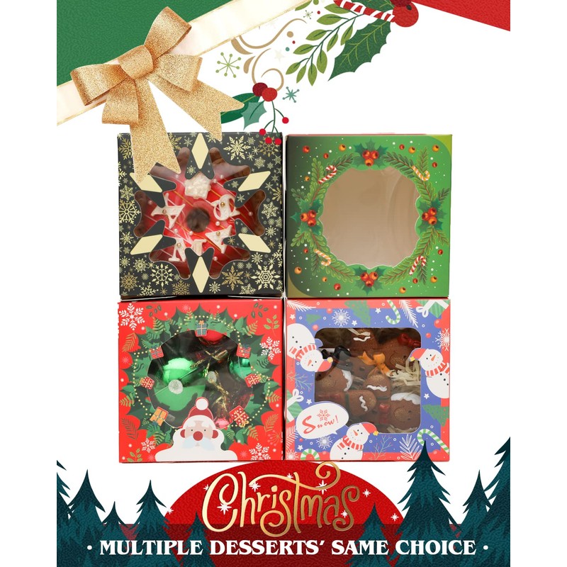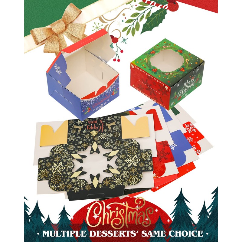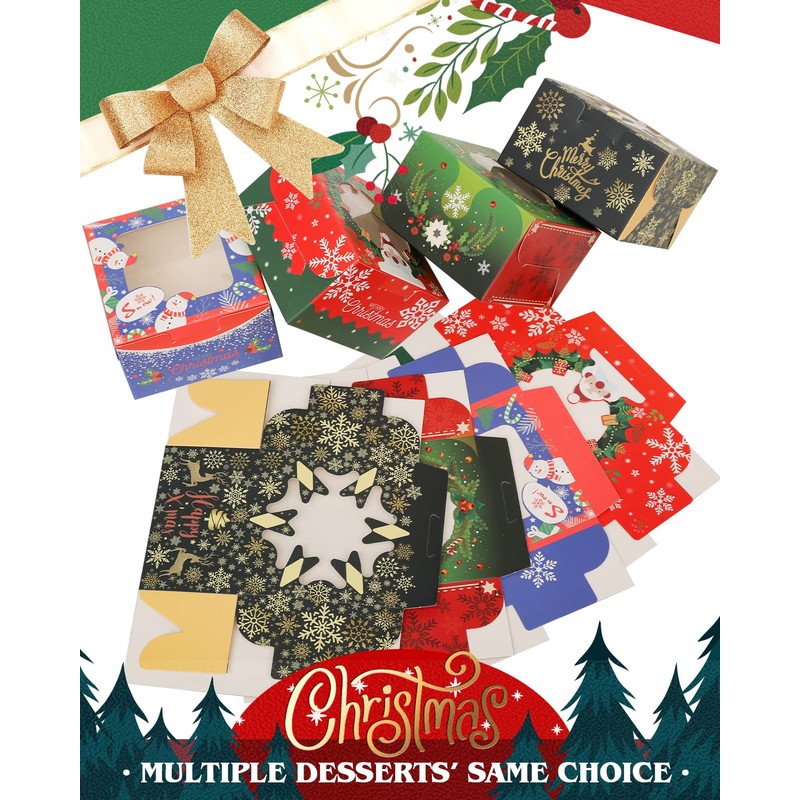 qiqee Christmas Bakery Boxes with Window 52pcs 4x4x2.5 Mini Cookie Boxes Maca...
