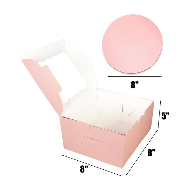 qiqee qiqee 8x8x5 Cake Box, 18 Sets Pink Cake Box with Window  18 Sets 8" Pink Cake Round Boards, 8inch Cake Containers