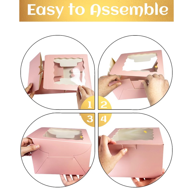 qiqee qiqee 8x8x5 Cake Box, 18 Sets Pink Cake Box with Window 18 Sets 8" Pin...