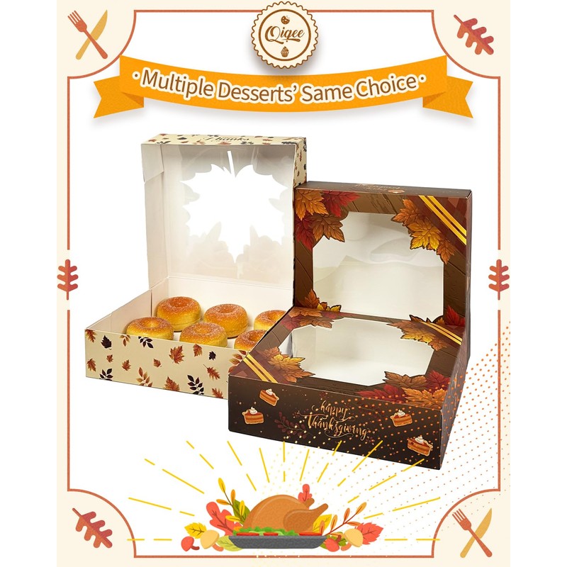qiqee Thanksgiving Pie Boxes with Window 10x10x2.5 inch 30Packs Cookie Donut Bakery Box