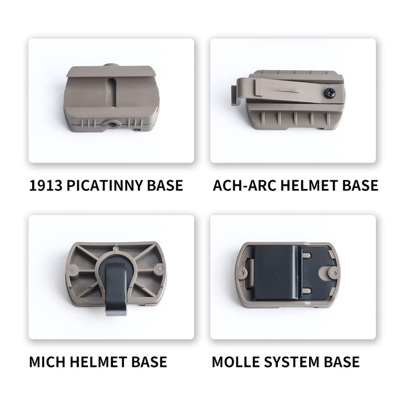 - 【Four Bases】Equipped with four bases, suitable for MICH, MOLLE, 20mm rail, helmet rail. Meet your different tactical needs.