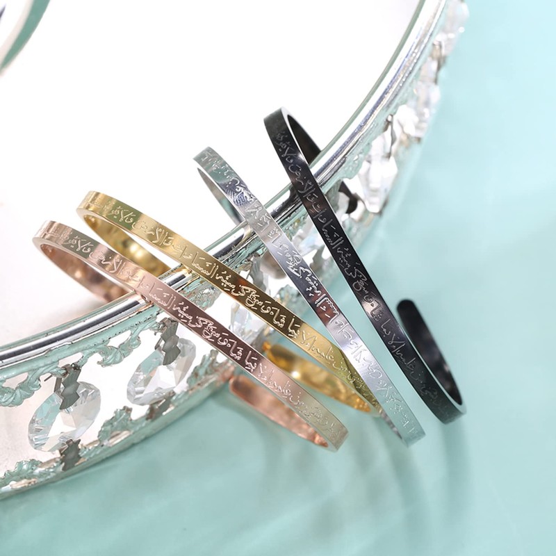 - 🎁PREMIUM PROCESS:every islamic cuff bracelet will polished many times with sleek edges to avoid scratch your wrist, shining surface and writing is easy to read, Very nice finish, Classy looking, substantial but light weight comfortably for daily wear.