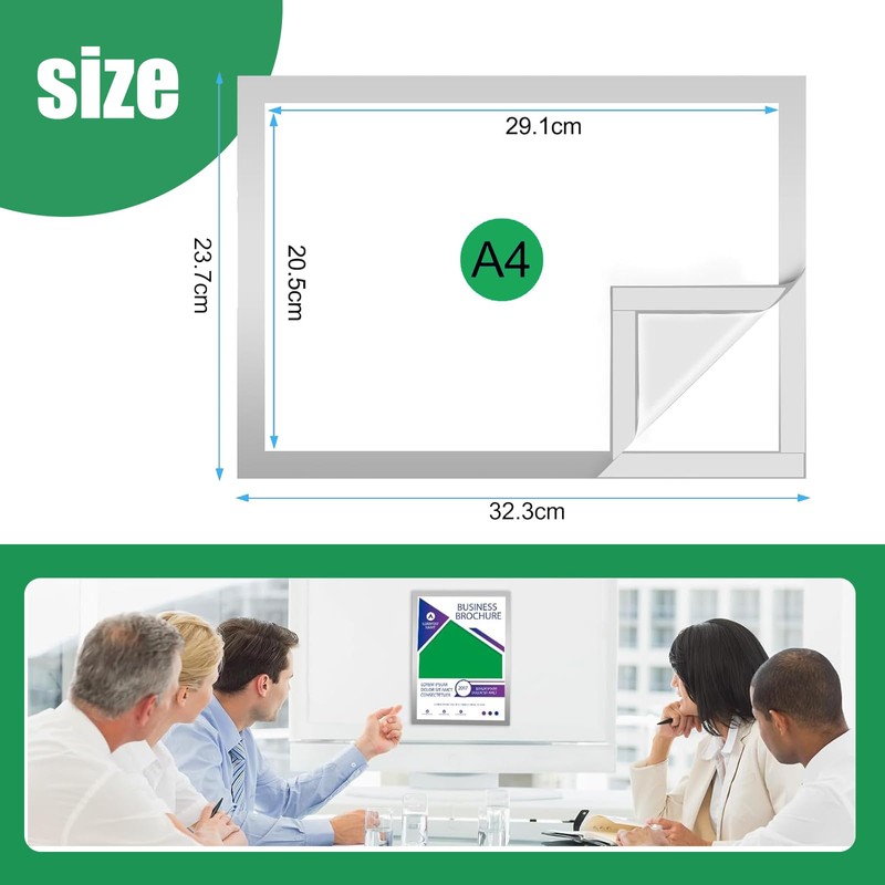 - Packungseinheit: Sie erhalten 10 magnetische Fotorahmen (Größe 32,5x23,8 cm), passend für A4-Dokumente. Ideal für vertikale und horizontale Ausrichtung, ermöglichen diese Rahmen eine flexible Präsentation von Fotos, Postern, Zertifikaten und mehr. Perfekt für den privaten und geschäftlichen Einsatz.