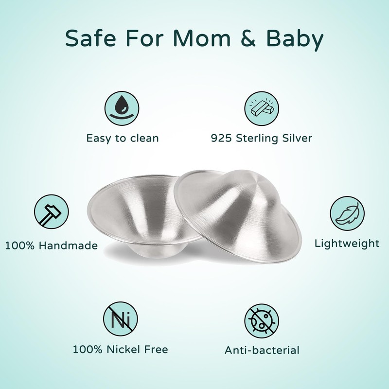 • Apply a drop of breast milk inside the nipple shield cups so they adhere well to your breasts,Breast milk promotes healing of sore,Soothe sore nipples with our silver nipple shield,100% natural, safe and effective、Nickel free.