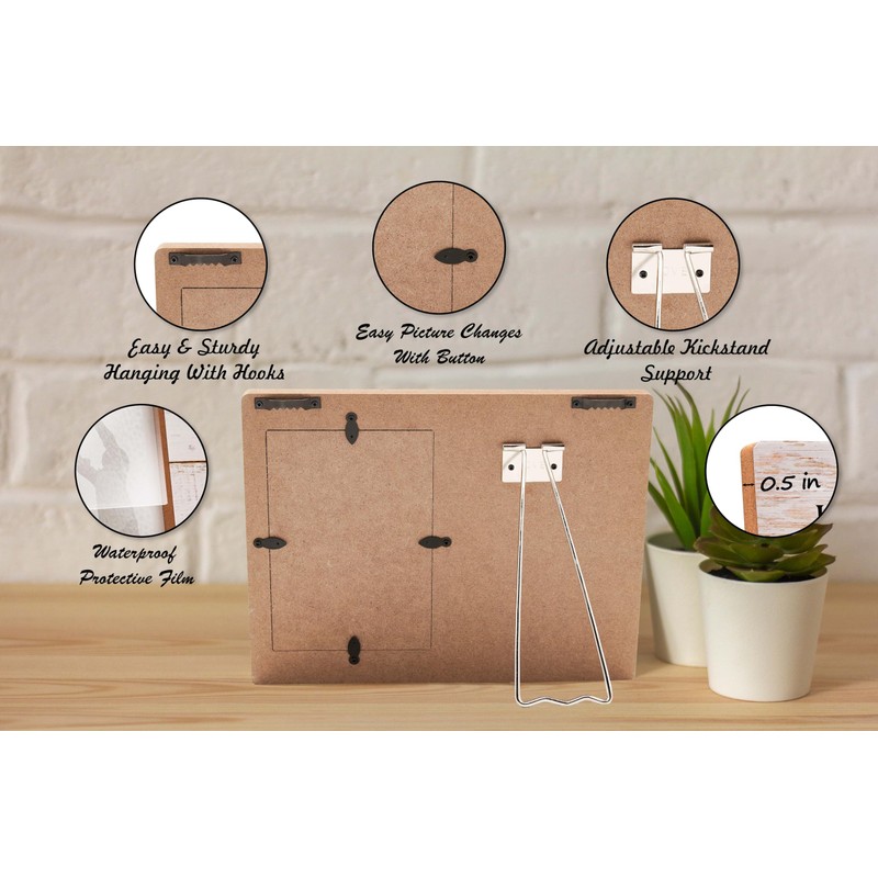 HIGH QUALITY MATERIAL - Our photo frames are made of high quality wood material to protect and decorate your precious keepsake photos. The surface is printed with exquisite patterns and text, which is clear and not easy to peel off, and can be used for a long time.