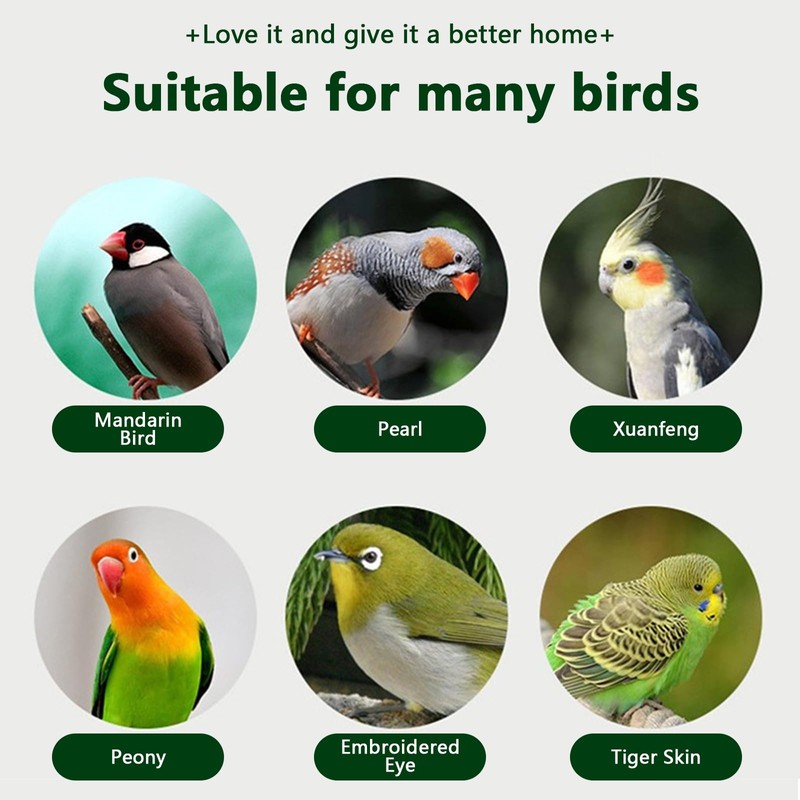 - Suitable for: songbirds, sparrows, parakeets, parrots, etc.