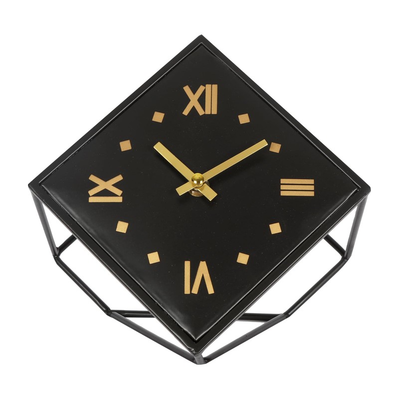 QIYAODECO Battery Operated Mantel Clock with Square Metal Case,No Ticking Analog Quartz, Simple Operation for Bedroom/Travel/Desk/Kids
