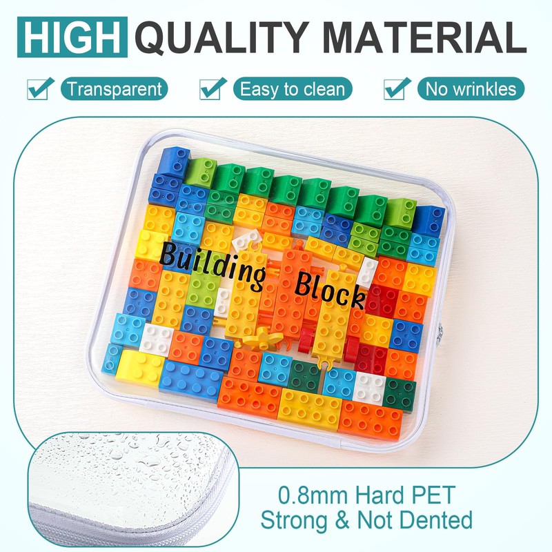 Qiyaz 12 Pcs Clear Hard Zipper Case Plastic Zipper Pouch with 5 Sheets Alphabet Stickers Double Toy Storage Organizer Makeup Case for Travel Building Blocks Puzzles Cosmetic(13.78 x 11.81 x 2”)