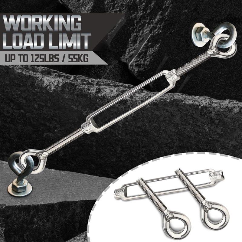 - ✿Usage Suggestion: Stainless Steel Turnbuckles have high load bearing capacity and can be reused to meet your variable usage needs. Tips: You can lubricate the heavy duty turnbuckles before use, which will help you adjust the length more effortlessly and increase its service life.
