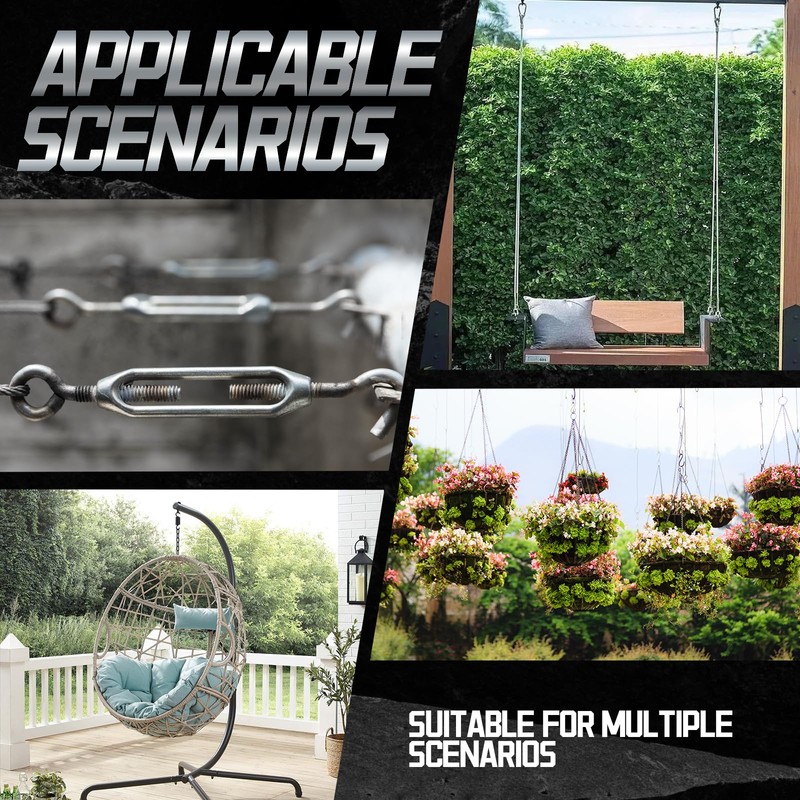 - ✿Widely applicable: This stainless turnbuckle has a stable structure, allowing it to be used for a long time even in humid environments. Adjustable turnbuckle is suitable for fixing garden potted steel wire, outdoor cable railing kits, sunshade sail fixings, catenary wire, and fence steel wires.