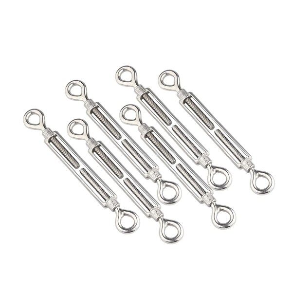 Qjaiune 6Pcs M5 Turnbuckle Eye & Eye Turnbuckles, 304 Stainless Steel Turnbuckle Adjustable Wire Rope Tensioner, Heavy Duty Turnbuckle for Cable Wire Rope Tension, Sun Shade, Tent Installation