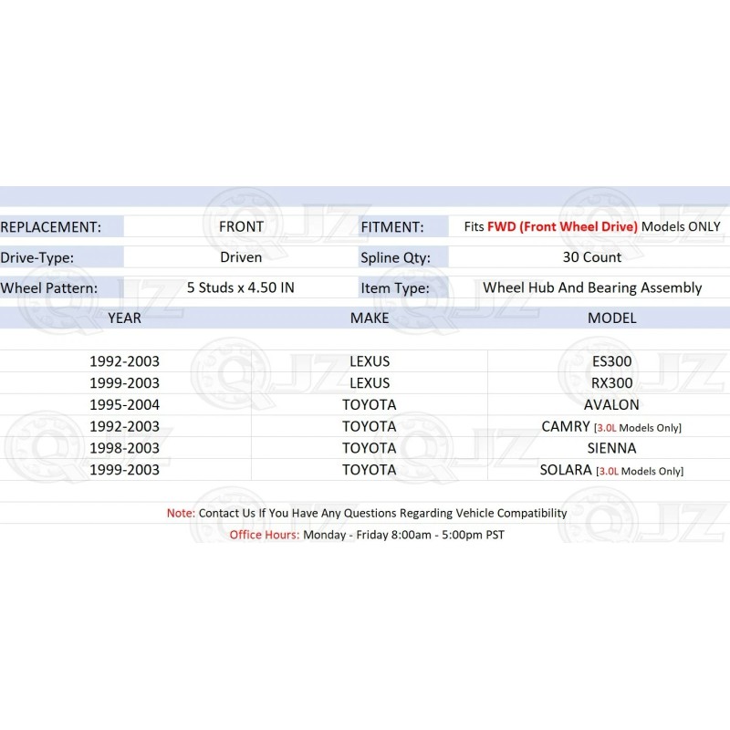 - Fitment Note: Fits FWD (Front Wheel Drive) Models ONLY