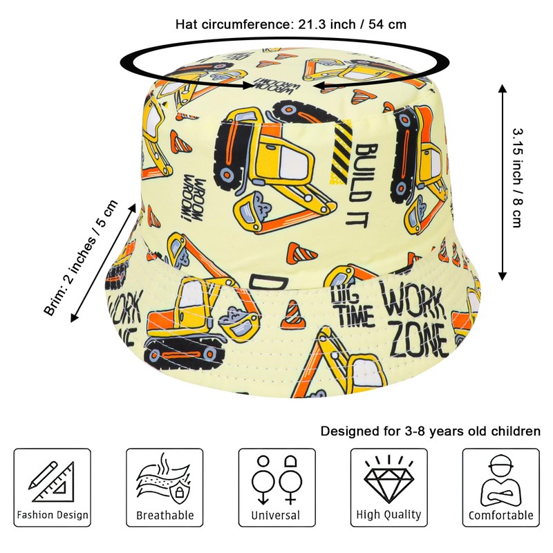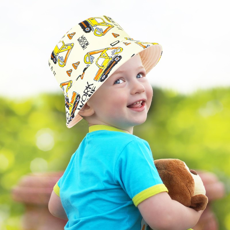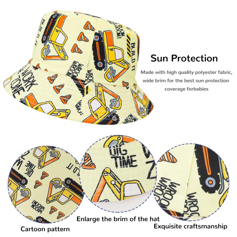 - DOUBLE SIDED DESIGN This reversible sun hat has an adorable digger pattern on one side and khaki color on the other, allowing your child to change their style effortlessly and you have two looks in one.