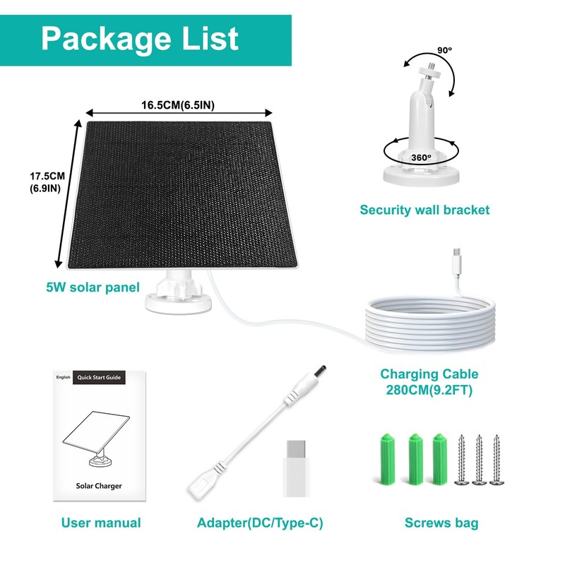 • Durable and Weather-Resistant for Ring Camera Solar Panel: Crafted with IP67 waterproof and dustproof technology, our solar panel stands up to the elements. Robust materials ensure long-lasting performance, making it ideal for outdoor installation in any climate.