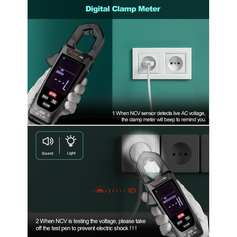 QLUUE Clamp Meter Current Clamp Multimeter AC/DC Voltage Test Instrument with Automatic Voltage Tester NCV Test, Measuring Current, Voltage, Temperature, Capacitance, Resistance, Continuity