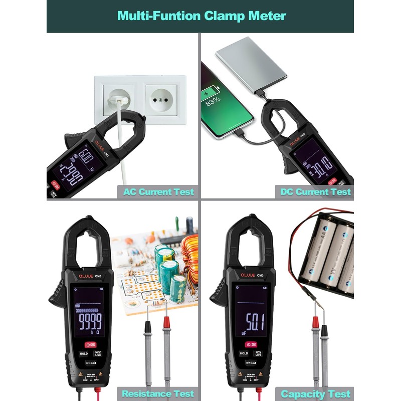 - ACCURATE AND VERSATILE The digital clamp meter can measure AC, AC/DC voltage, continuity, resistance, frequency, capacitance and temperature. Suitable for professionals and amateurs.