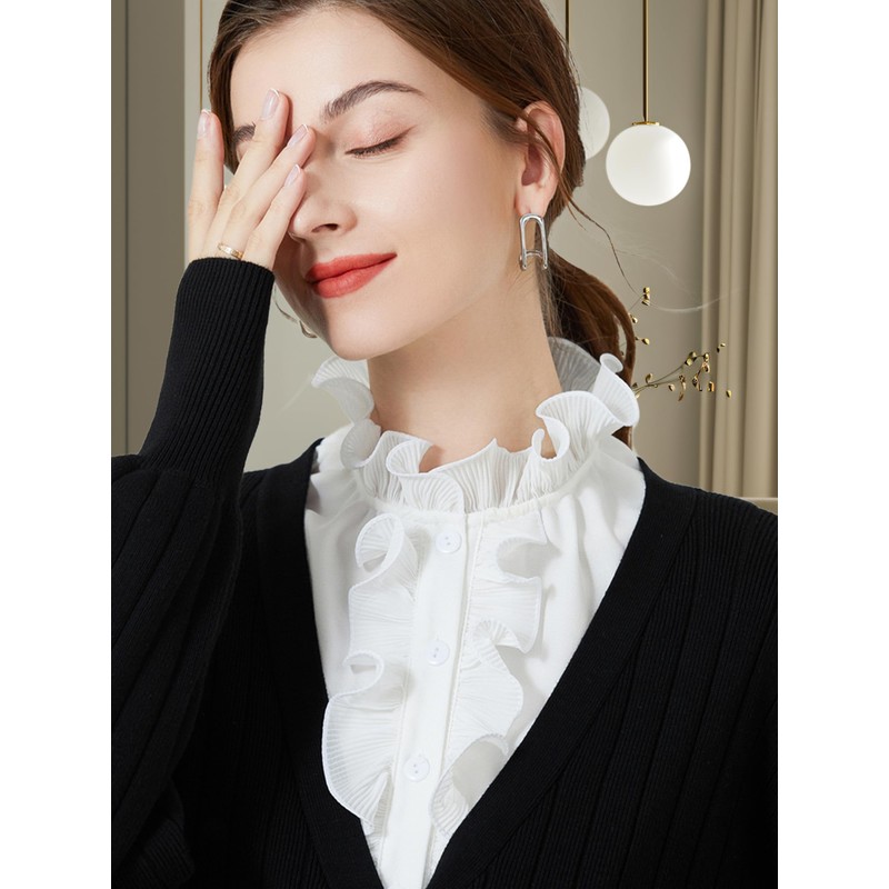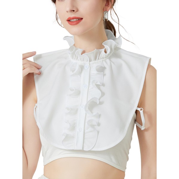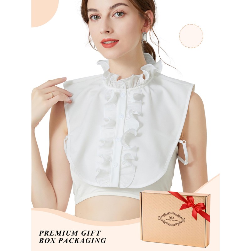 QLX Ruffle Collar Detachable Collars Dickey V Neck Shirts Turtleneck for Women White