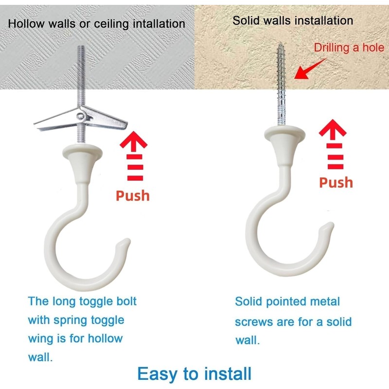 - The heavy duty ceiling hooks are made of metal, solid,can be used for longer.