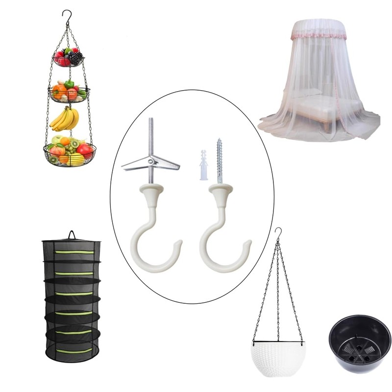 - Large Swag Hooks Plant Hooks for Ceiling Hooks for Hanging Plants - Ceiling Hangers Heavy Duty for Hanging Light - Chandelier Hook Ceiling Installation for Cavity Wall Fixing (White )