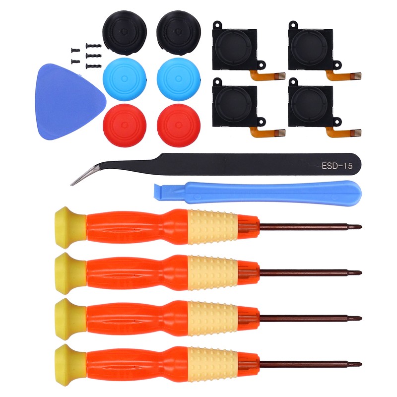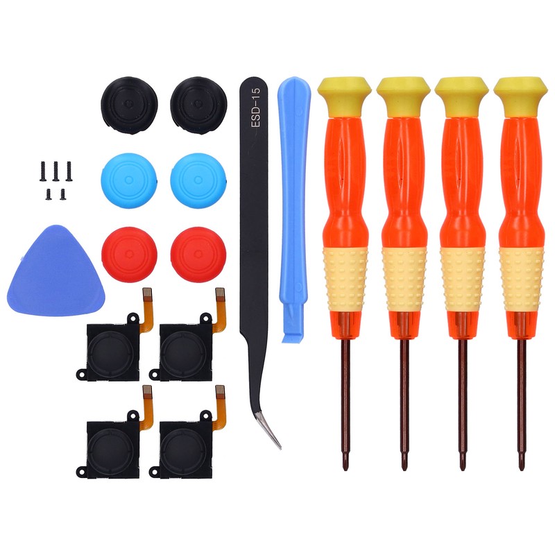 1、Perfect replacement analog joysticks for Switch Joycon, work for left and right for Joycon, repair your worn out, damaged and drift analog joystick, make it looks like the new one. 2、Non slip handle for a comfortable grip. The drill bit is made of high quality stainless steel with high strength and toughness, so you can be relieved to repair the joystick without damaging it. 3、A screwdriver with a magnetic tip can easily lift the screw after the completion of the unfastening to quickly replace the joystick. Great backup for Switch fans. 4、The joystick caps protect your joystick from scratches, corrosion, spalling or other damage; it is made of high quality silicone material, which is safe, soft and comfortable, making it have the right touch. 5、Easy to install and use, equipped with a full set of professional repair kit, providing you detailed installation instructions, let your operation become easier and quicker.