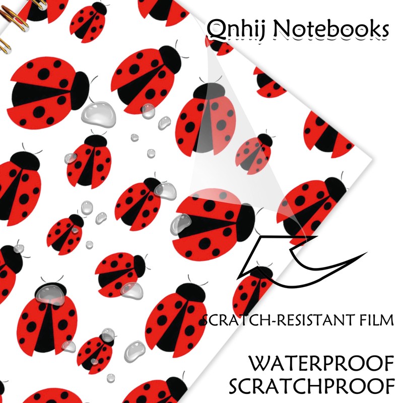Qnhij Ladybug Spiral Notebook 5.5x8.3, Ladybird Notebook, Ladybug Gifts for Women Journal, Lady Bugs Gifts Women Journal