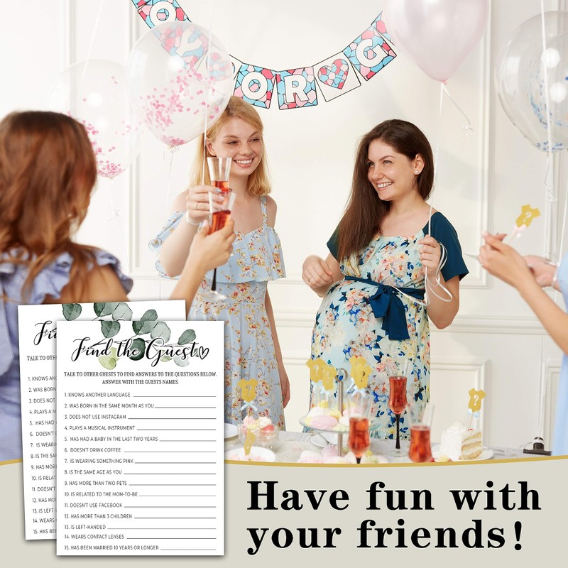 Qoamp Greenery Find The Guest Baby Shower Games, 25 Eucalyptus Gender Neutral Cards, Gender Reveal Party Game Set for Women, Men-A11