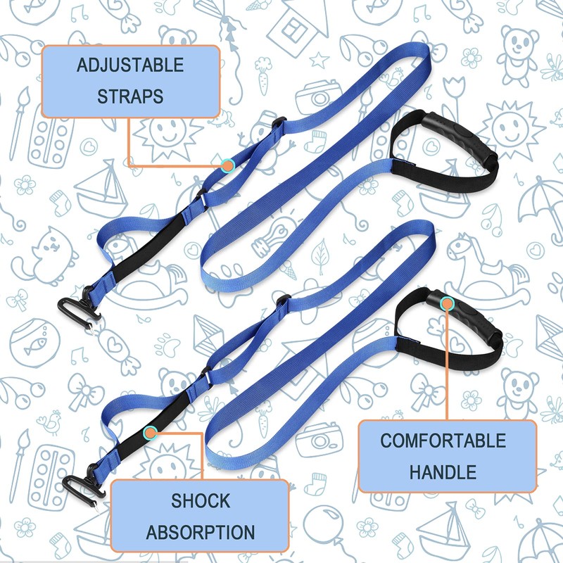 - ADJUSTABLE: QOGIR ski harness is adjustable at both the shoulders and hips to help you get the perfect fit for your child. It Included multiple webbing loops for proper hip placement as well as length extension to accommodate for different height. Elasticzed leashes cord length is moderately adjustable too, which attach at their hips to help you guide them as they learn the proper stance, balance, and basic turning. Easy to put on and off, It was very easy to adjust for the perfect fit!
