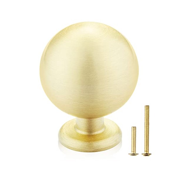 QogriSun 10-Pack Solid Brass Cabinet Knobs, Round Ball Gold Knobs for Dresser Drawer, 1.1-Inch Diameter, Modern Kitchen Hardware, Brushed Brass Finish