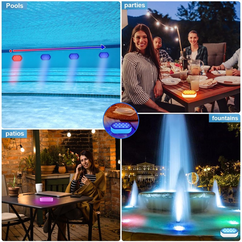 - Multi-functional: Waterproof pool light is perfect for indoor and outdoor pools, ponds, fountains, bathtubs, hot tubs, showers, spas, jacuzzis, vase bases, aquariums, and nighttime bedrooms,and great to set the mood for weddings, events, parties and festivals