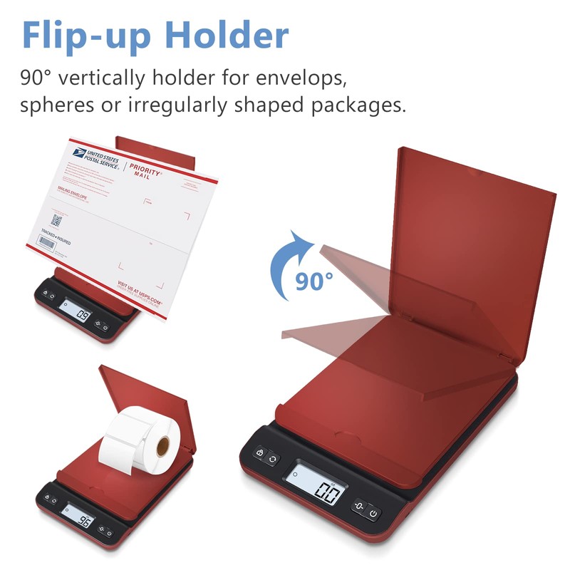 - FLIP-UP HOLDER & EASY STORAGE: The lid of the package scale is a compact holder that opens to 90° vertically to hold spheres or other irregularly shaped packages or items for easy weighing. The lightweight and compact design makes the scale easy to store and move.