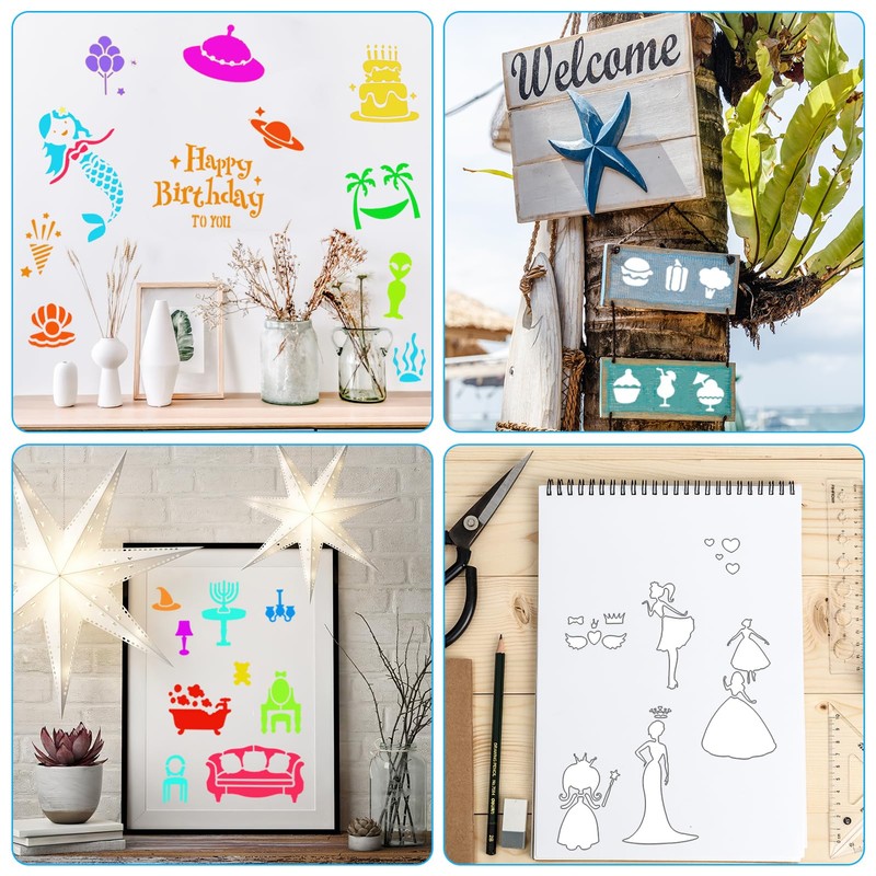Mermaid, dinosaur, vehicle, birthday, fruit, animal, spaceship, flower and other hollow templates.