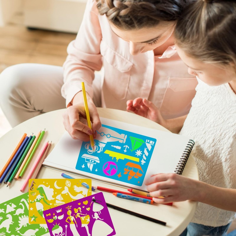 • Plastic drawing stencils for children: colour templates are made of plastic and can be cleaned when they get dirty. The size of the drawing template is 8 x 6 inches/20 x 15 cm. Suitable for party gift bags, children's school bags or travel bags. These coloured plastic colouring templates can be used to cultivate children's painting skills and improve their practical skills and creativity!