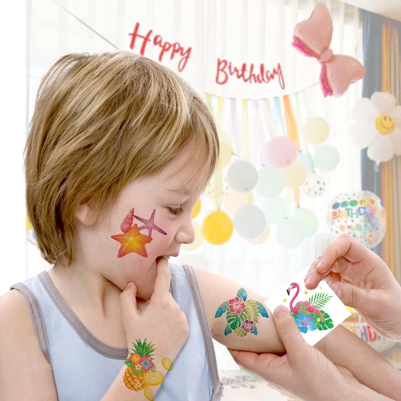 Featuring vibrant hibiscus designs, palm leaves, and fun summer patterns, these safe, non-toxic temporary tattoos are perfect for beach parties, luau events, or birthday celebrations.
