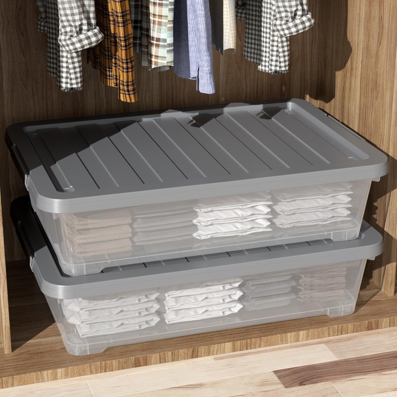 Qqbine 40 Quart Large Plastic Underbed Storage Boxes, Under Bed Storage Containers Plastic, 3 Packs