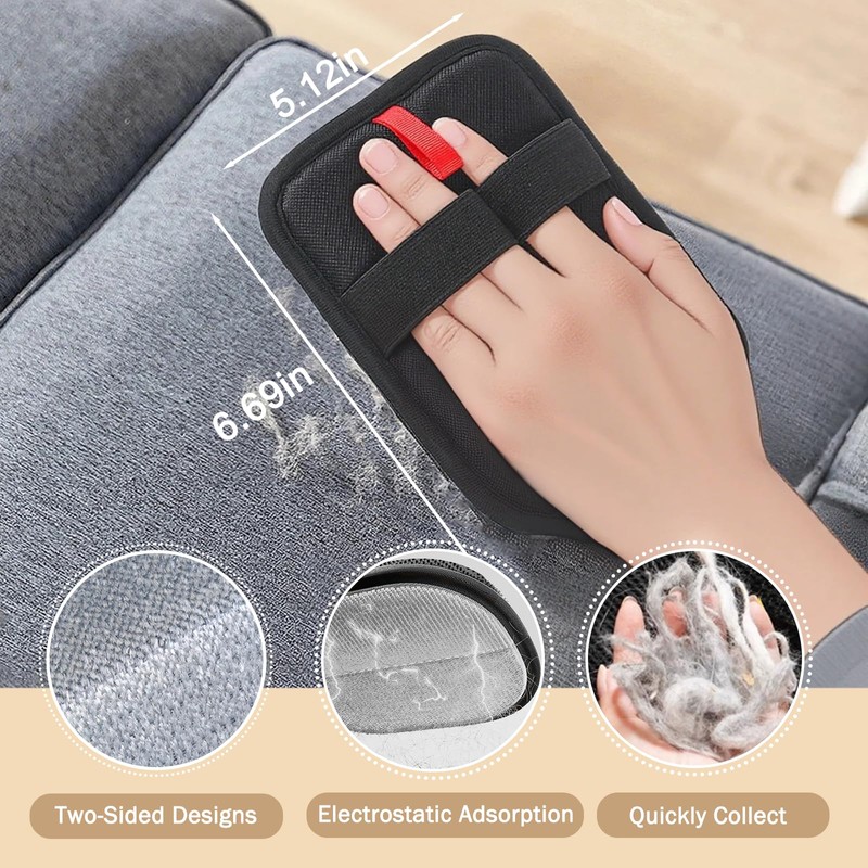 - 【Powerful Static Cleaning】 With advanced static technology, this electrostatic pet hair remover glove works like a magic brush pet hair remover, attracting fur, lint, and dust in one smooth motion. No more endless rolling—lift stubborn debris off fabrics instantl