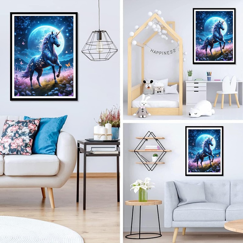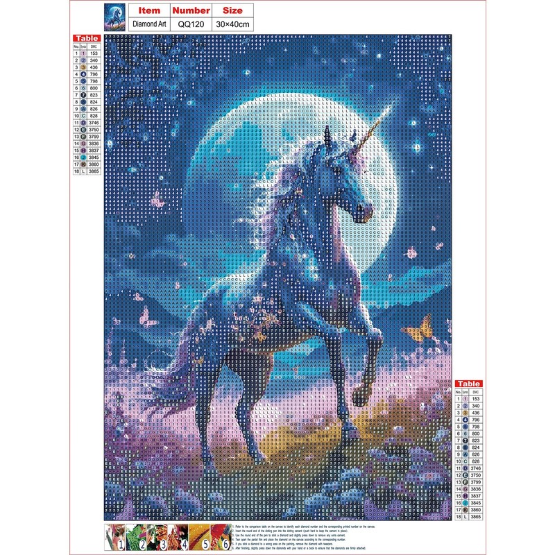QQYRHN 5D Fantasy Unicorn Diamond Painting Kit for Adults Beginners Wild Flowers Diamond Art Kits Complete DIY Moon Night Diamond Embroidery Set Perfect for Relaxation and Decoration 30 x 40 cm
