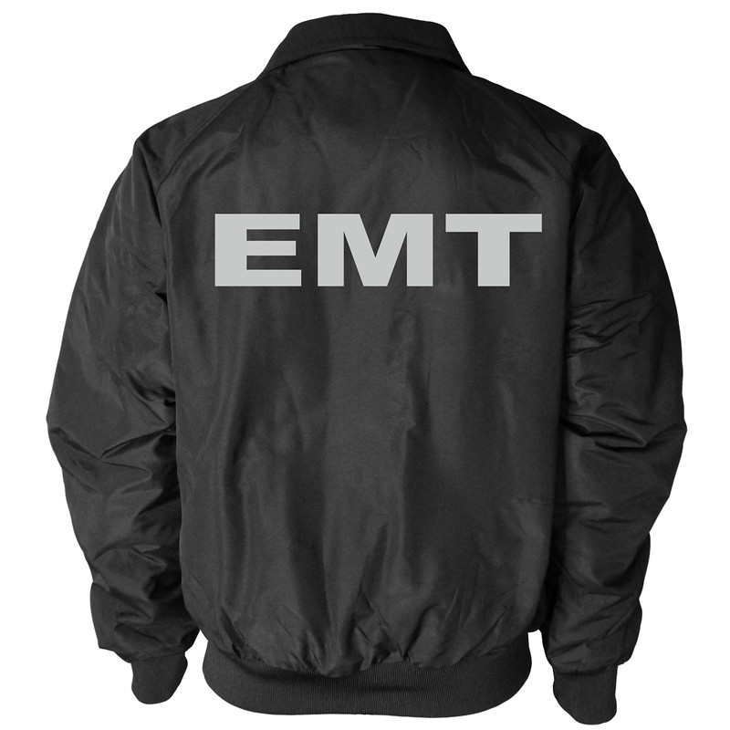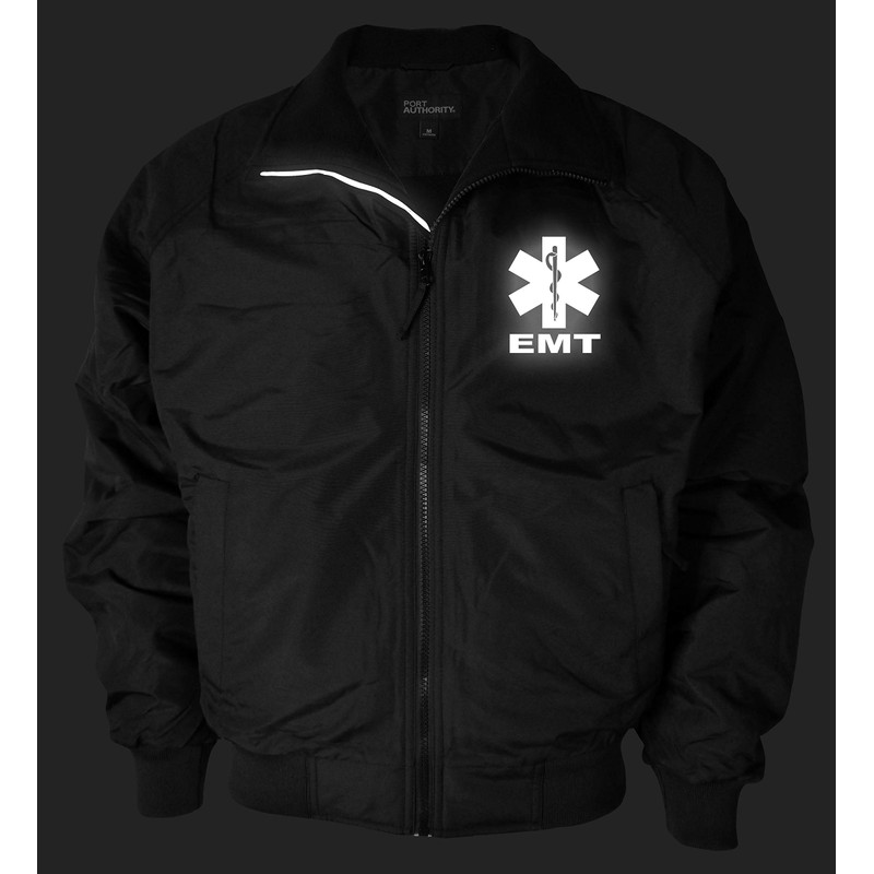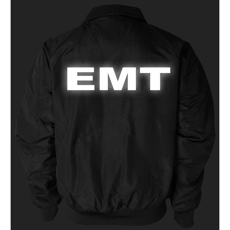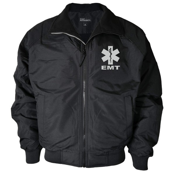 Qraphic Tee EMT Heavyweight Jacket, Reflective Logo, Fleece body Lining & polyfill sleeve lining jacket, Emergency Medical (black, Medium)