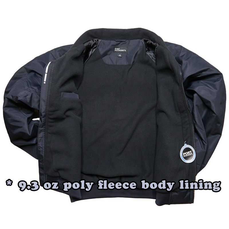 - 9.3-ounce, 100% polyester fleece body lining