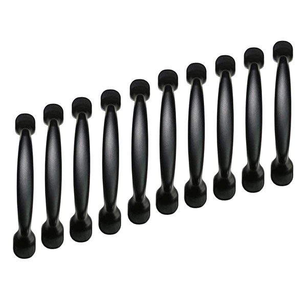 Qrity 10Units Black Aluminum Cabinet Door Drawer Handles Knobs Pull Handles Cupboard Closet Door Bow Shape Pull Handle (96MM)