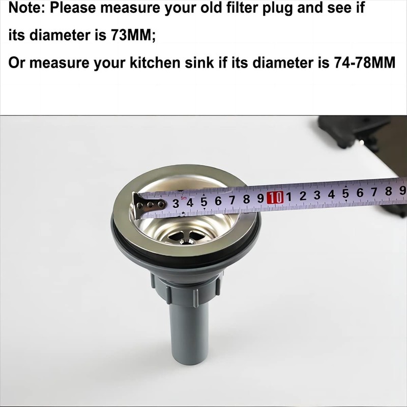 • Note: Please measure your old filter plug and see if its diameter is 73MM; Or measure your kitchen sink if its diameter is 74-78MM