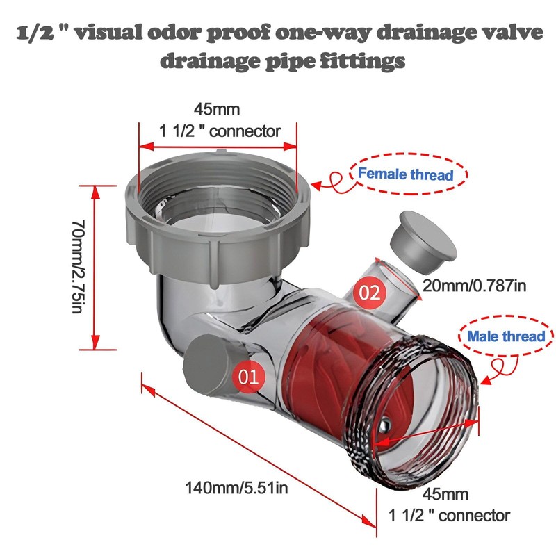 - NEW DESIGN: Our drain fittings purchase thickened PP material made and steel ball, translucent grey visible with auto close one way check valve design, anti-clogging, anti-odour.