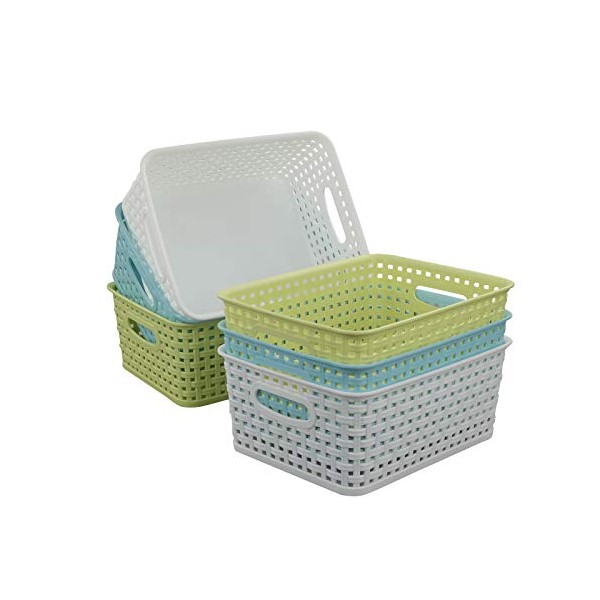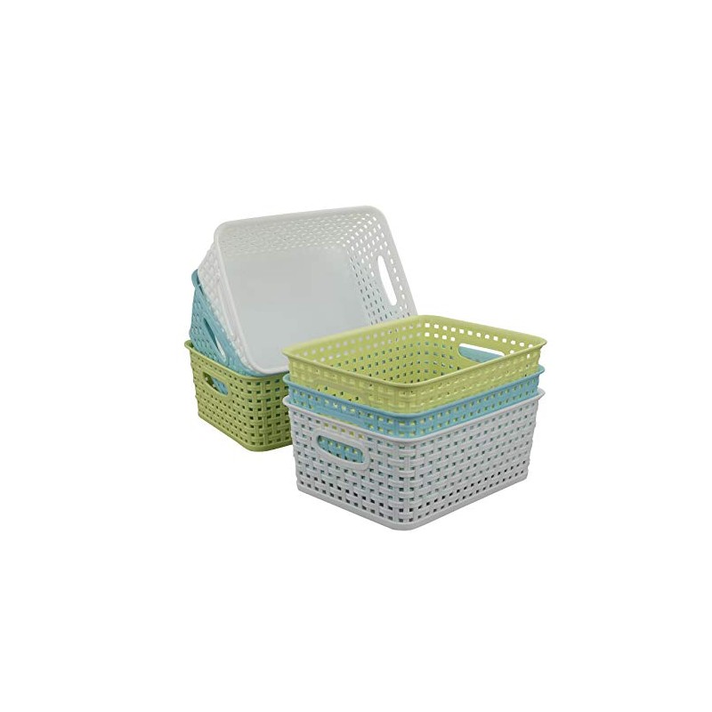 Qsbon Plastic Storage Baskets / Bins Organizer for Bathroom, 6-Pack