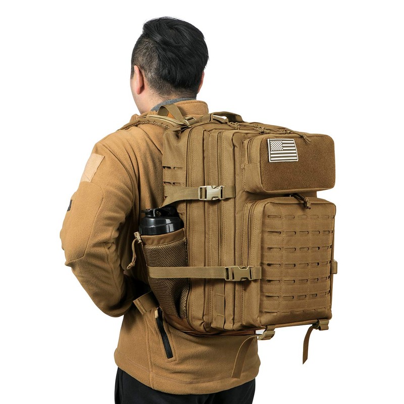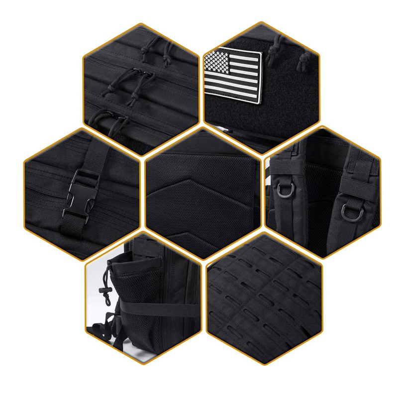 - ✅【MOLLE MODULAR DESIGN】 The Laser Cut Molle Webbing Design making this tactical backpack special. it uses Two Layers Fabric Laser Cutting MOLLE Hang System to allow all range of tactical pouches attachment., designed to be used in combination with other equipment, you can attaching extra pouches or gears as tactical backpack; such as kettle pouch, walkie-talkie pouch, first-aid pouch, torch pouch, sundries pouch and also the sleeping bag and mat.