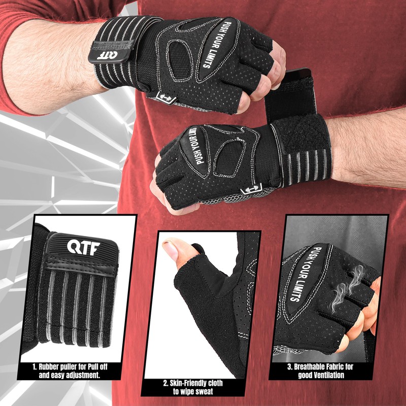 - ✅ Built-in Wrist Wraps: Designed with built-in wrist wraps, the QTF Workout Gloves provide superior wrist support for both men and women during weightlifting, cross-training, Olympic lifts, and other exercises that require wrist protection.