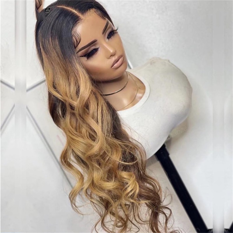 QTIKER 13x4/13x6 Transparent Lace Pre-plucked Ombre Blonde Body Wave Human Hair Wig (13X4, 16inch)
