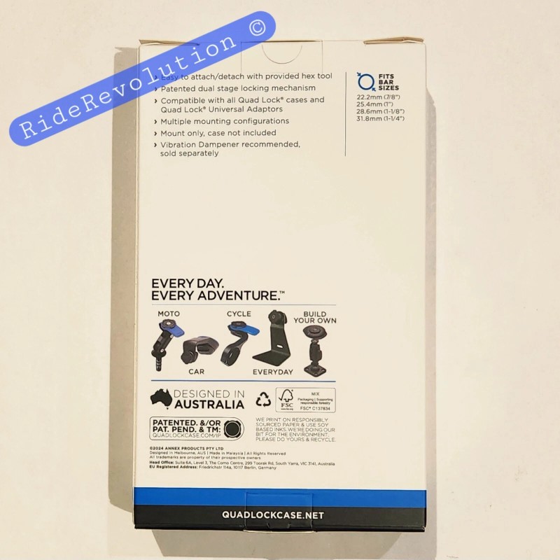 QUAD LOCK Motorcycle/Moto Handlebar Mount + Vibration Dampener - NEW/FREE S+H